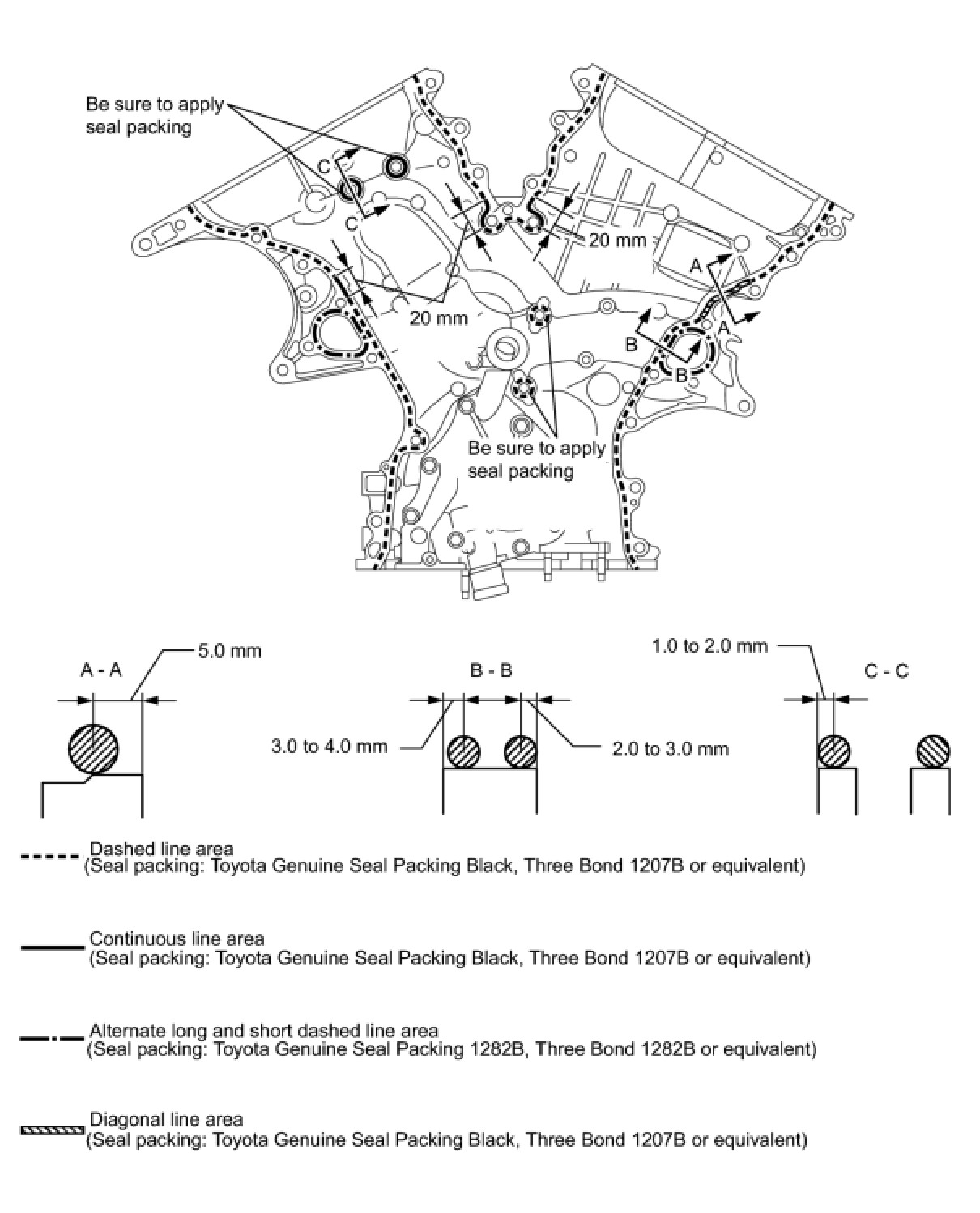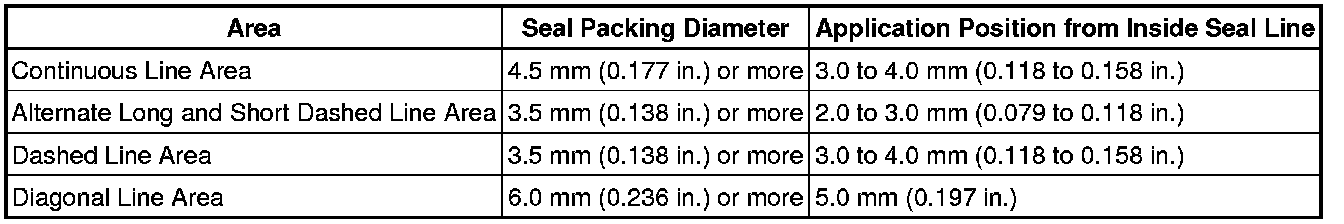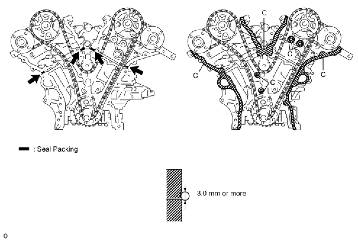 (b) Apply seal packing in a continuous line to the timing chain cover as shown in the following illustration.