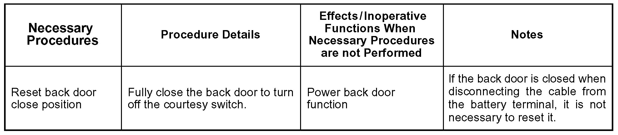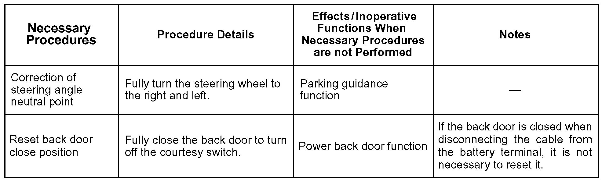 5. PROCEDURES NECESSARY WHEN BATTERY TERMINAL IS DISCONNECTED/RECONNECTED