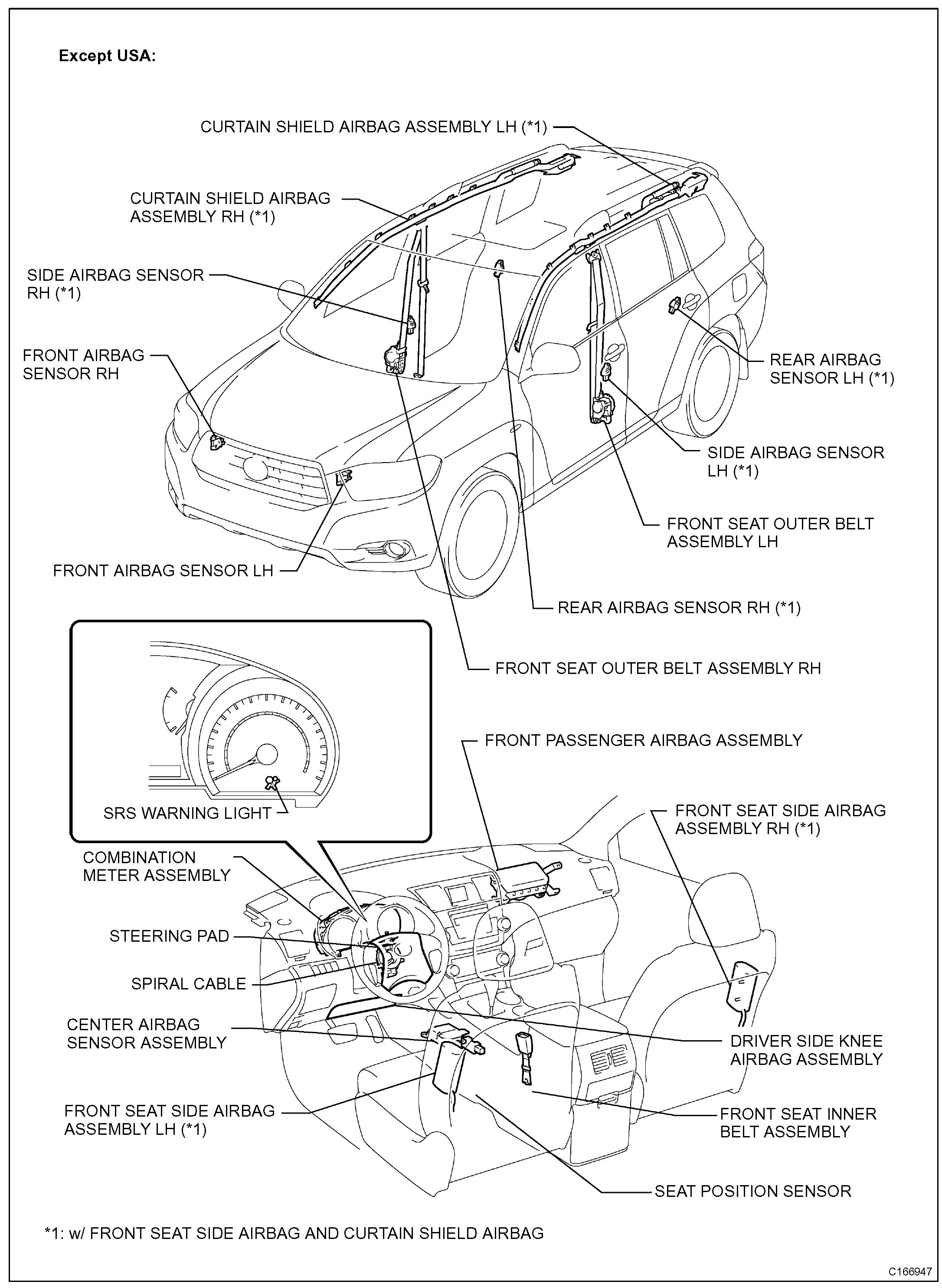 1. Refer to the TOYOTA repair procedures for the SRS airbag system inspection procedures.