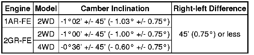 Camber (Unloaded Vehicle):