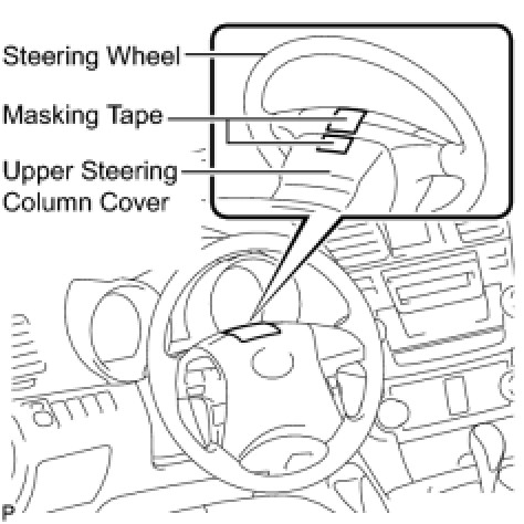 (1) Apply masking tape on the top center of the steering wheel and steering column upper cover.