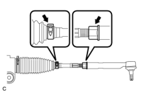 (1) Draw a line on the RH and LH tie rod ends and rack ends respectively where it can be easily seen.