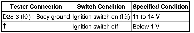 (b) Turn the ignition switch on (IG), and measure the voltage according to the value(s) in the table below.
