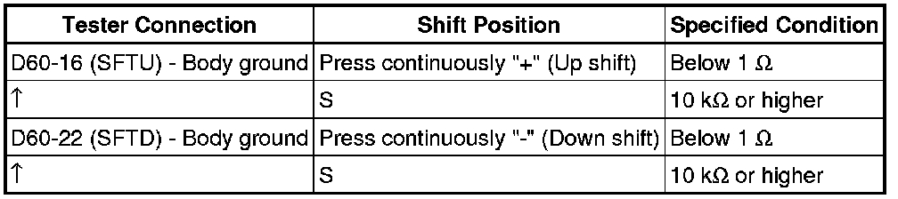 (e) Measure the resistance according to the value(s) in the table below when the shift lever is moved to each position.