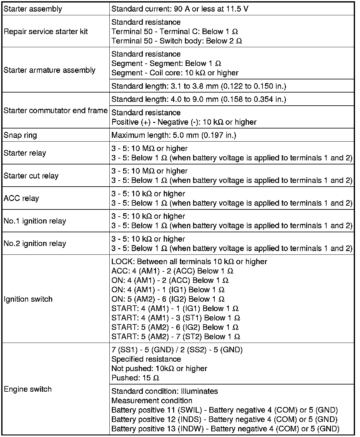 SERVICE SPECIFICATIONS: 2GR-FE STARTING: SERVICE DATA