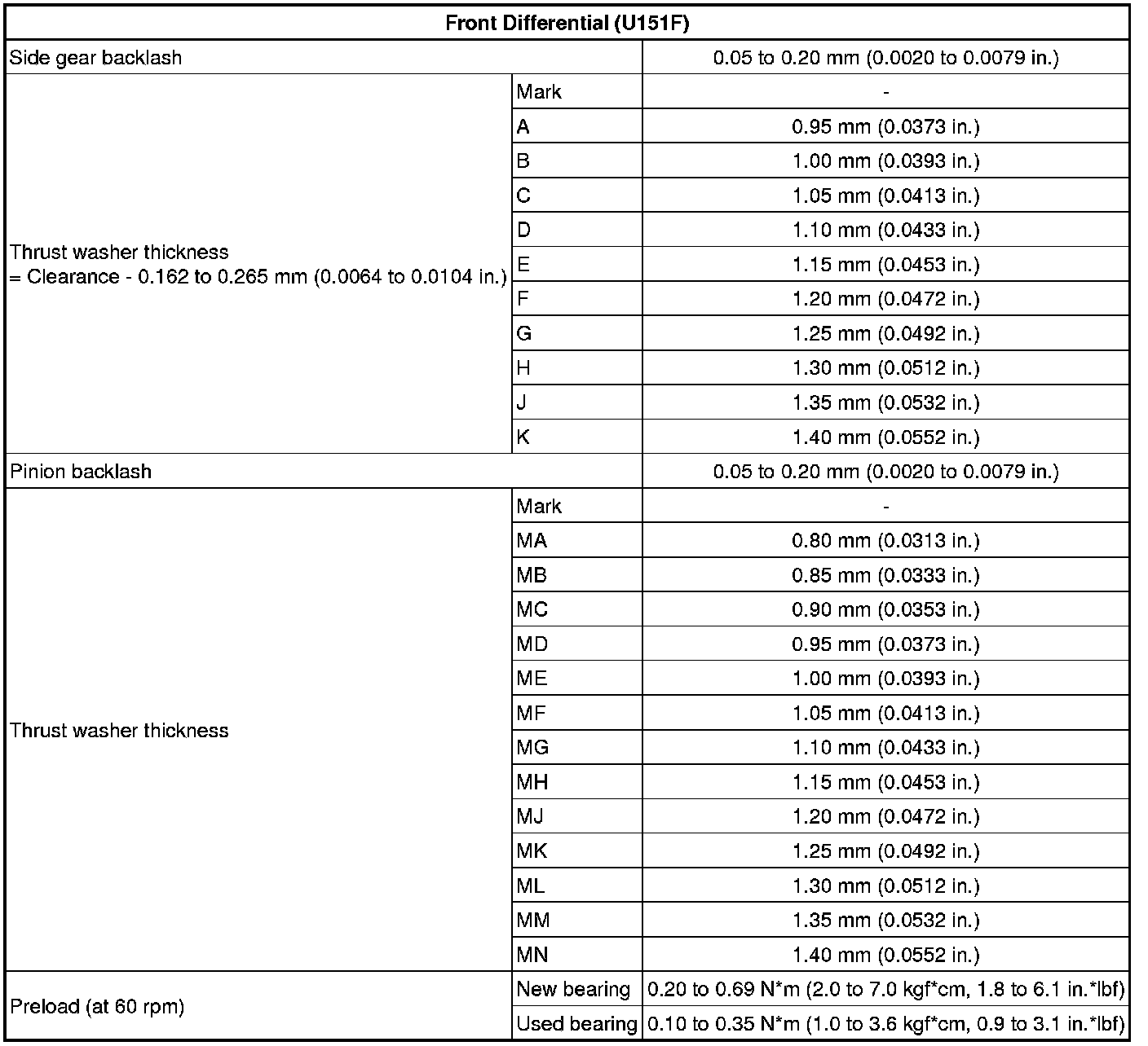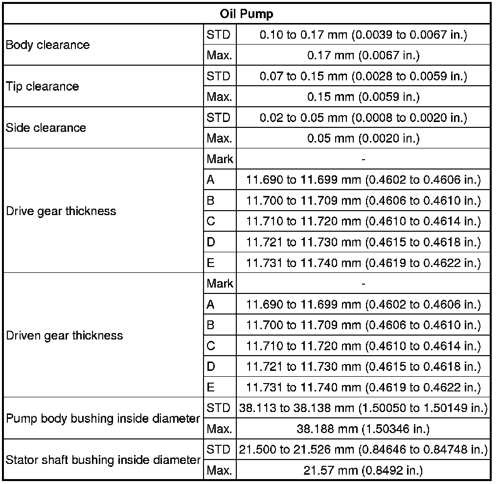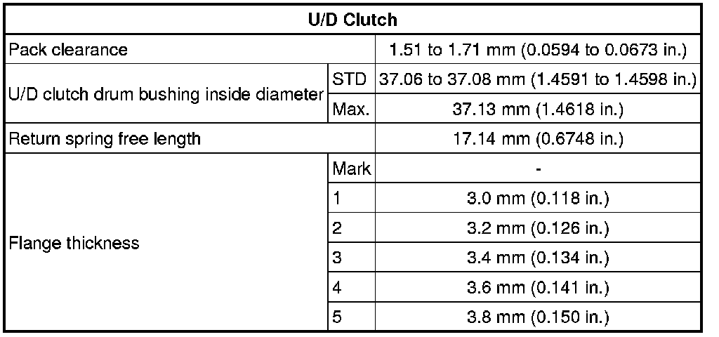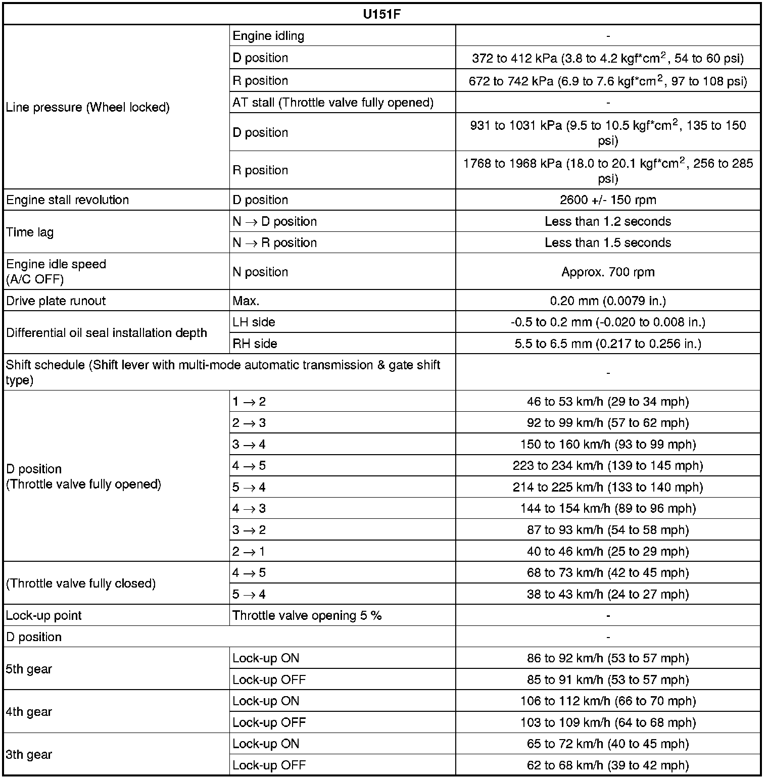 SERVICE SPECIFICATIONS: U151F AUTOMATIC TRANSAXLE: SERVICE DATA