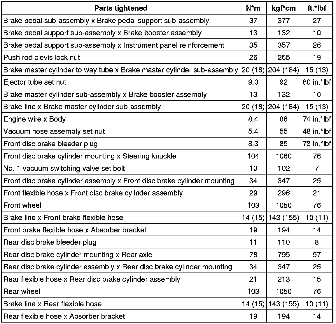 SERVICE SPECIFICATIONS: BRAKE: TORQUE SPECIFICATIONS