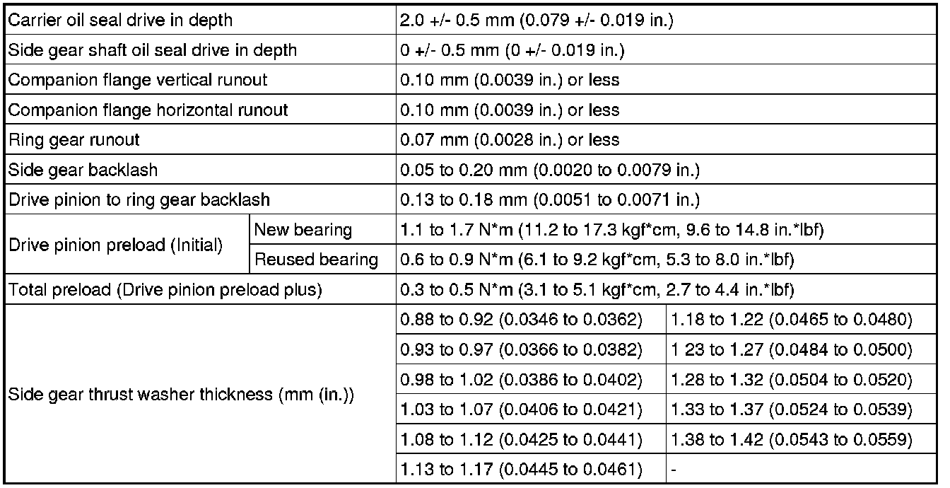 SERVICE SPECIFICATIONS: DIFFERENTIAL: SERVICE DATA