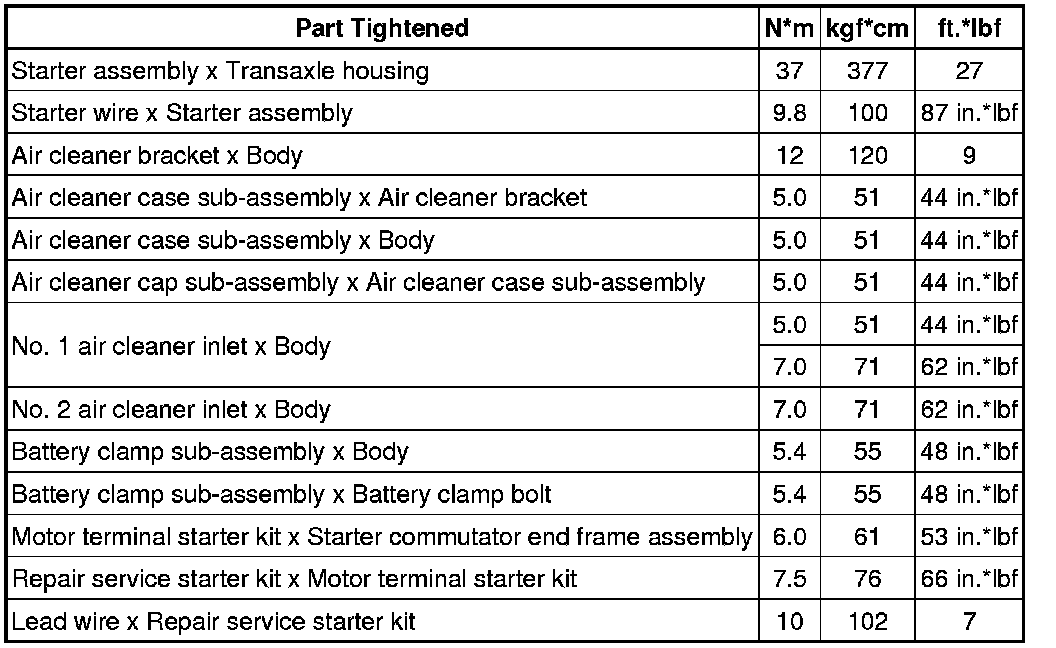 SERVICE SPECIFICATIONS: 2GR-FE STARTING: TORQUE SPECIFICATIONS