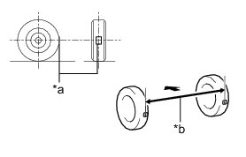 (d) Put tread center marks on the rearmost points of the rear wheels and measure the distance between the marks (dimension B).