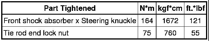 SPECIFICATIONS: ALIGNMENT / HANDLING DIAGNOSIS: TORQUE SPECIFICATIONS