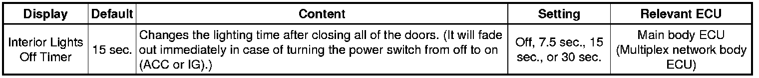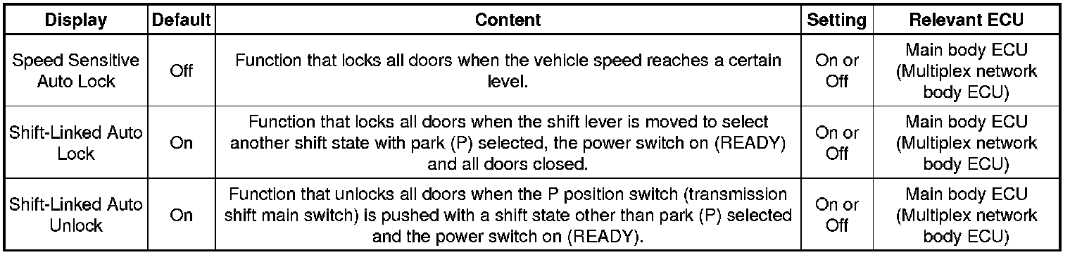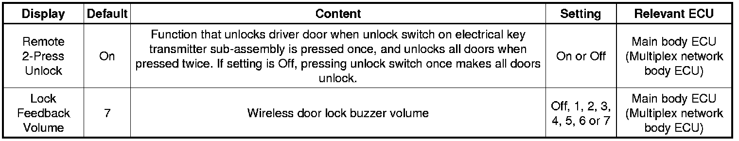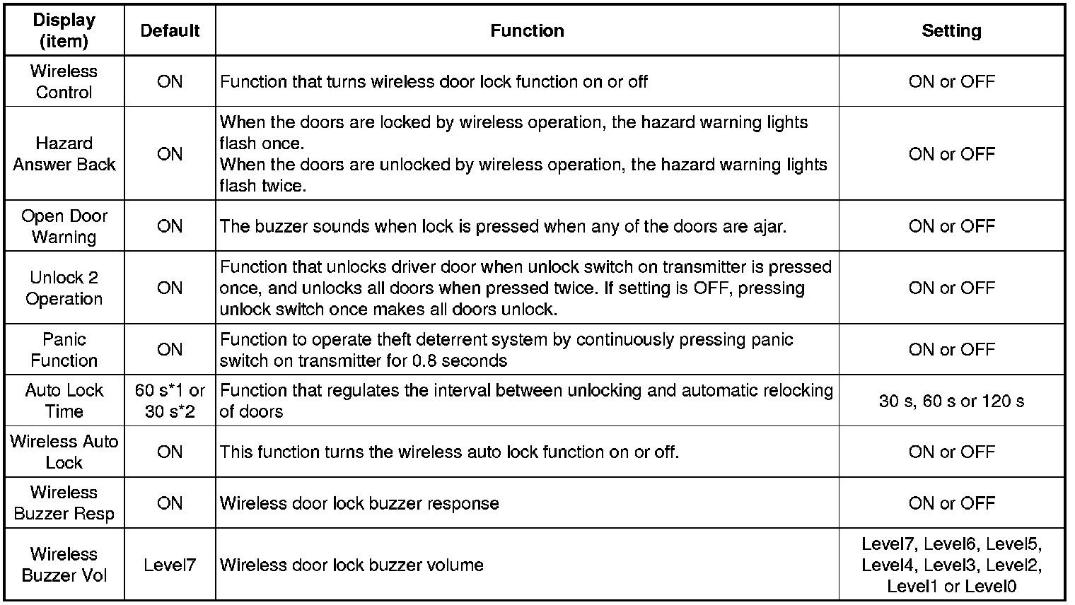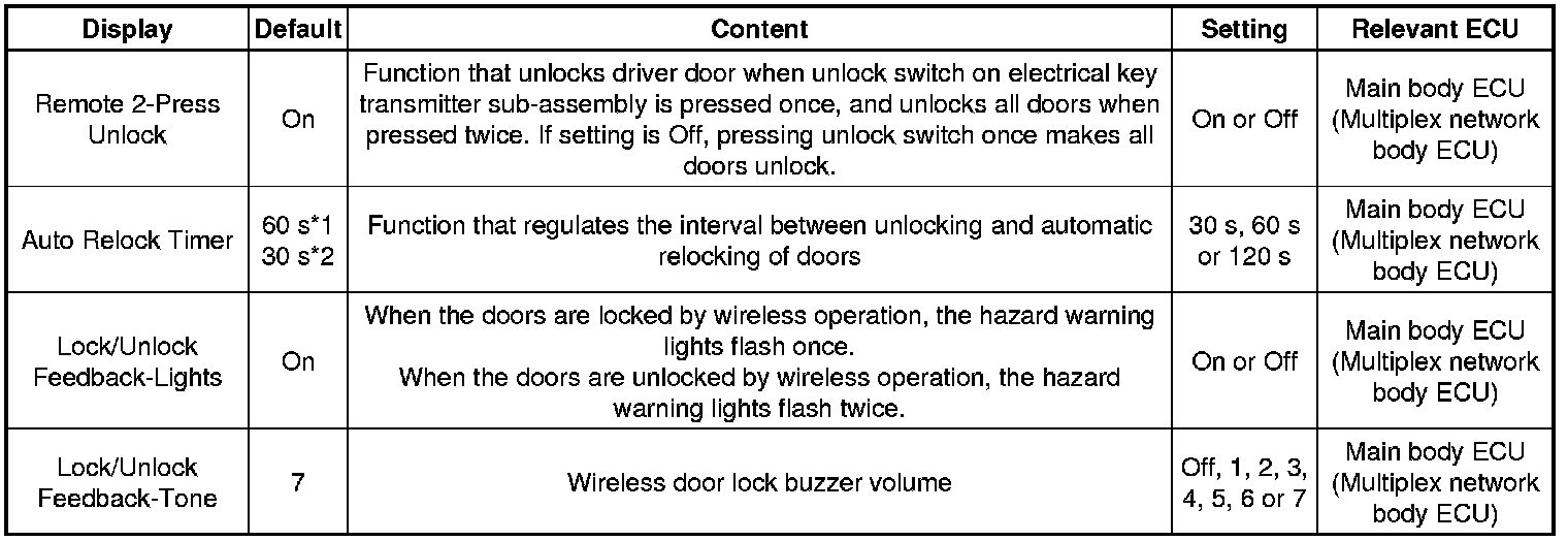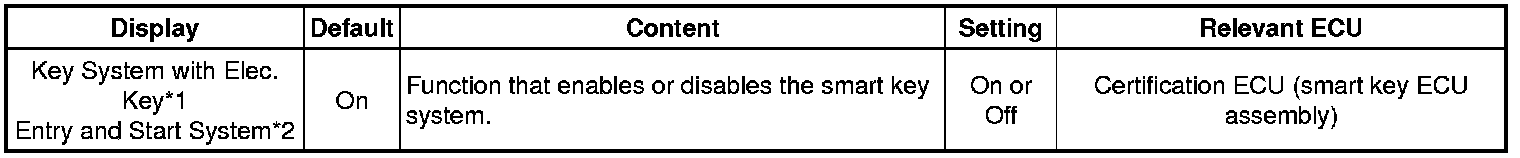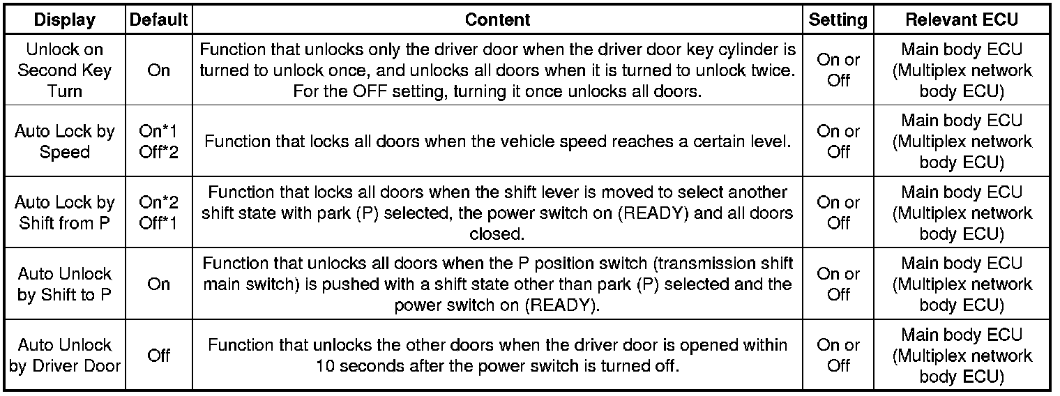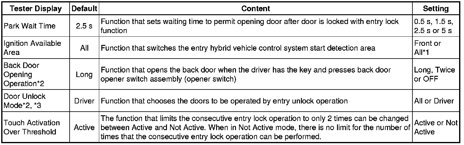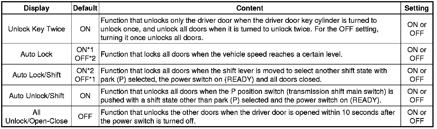 4. ENTRY UNLOCK MODE SWITCHING* (SMART KEY SYSTEM (for Entry Function))