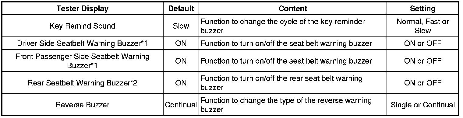 * *1: This setting is only valid for the buzzer which sounds at 20 km/h (12 mph) or more.