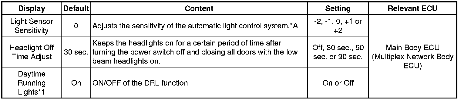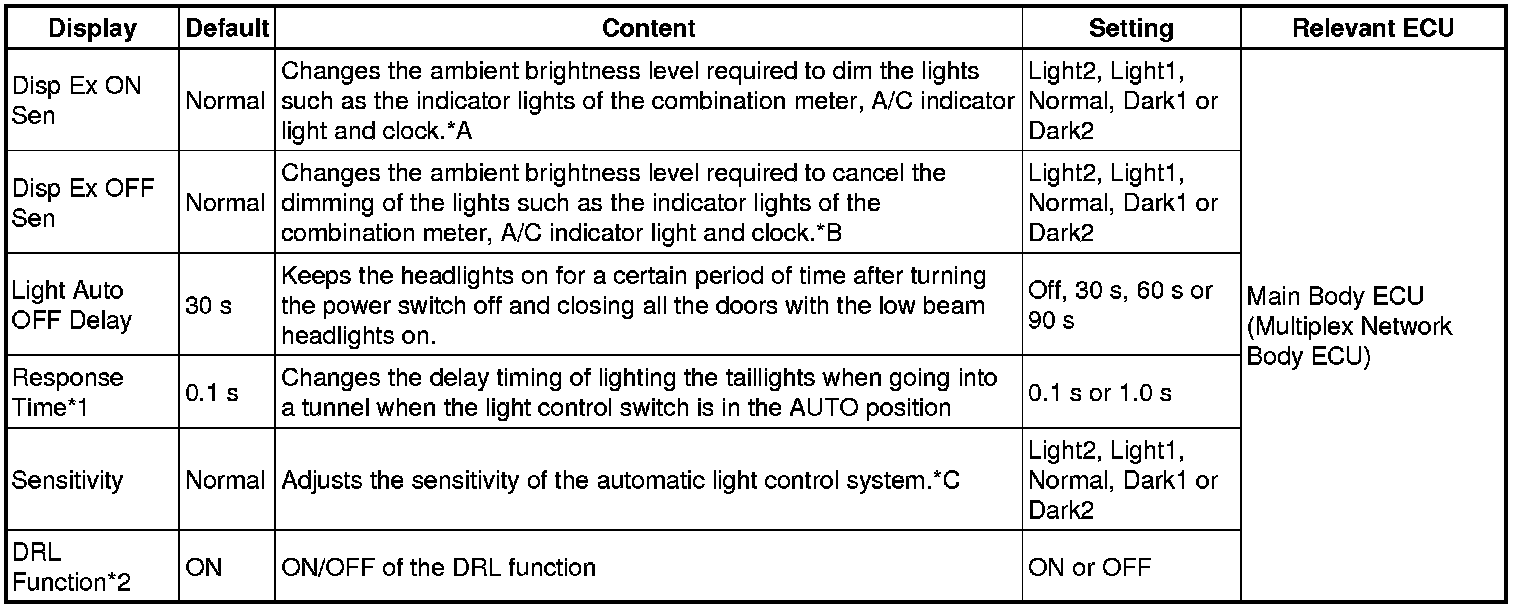 (c) Customizing with the Multi-display (w/ Navigation System (for Radio and Display Type) or w/ Audio and Visual System (w/ Daytime Running Light))