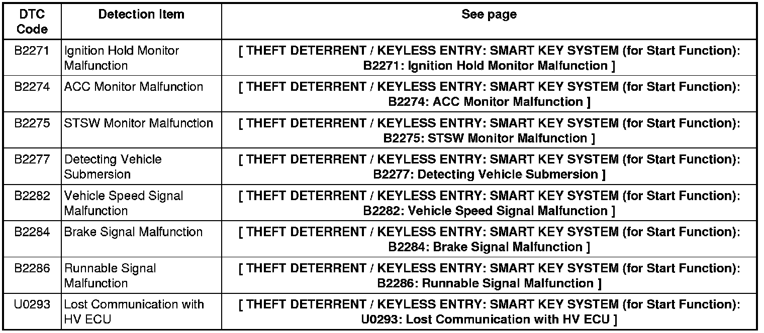 THEFT DETERRENT / KEYLESS ENTRY: SMART KEY SYSTEM (for Start Function): DIAGNOSTIC TROUBLE CODE CHART