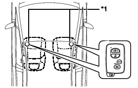 When pressing the lock switch, hold the electrical key transmitter about 1 m (3.28 ft.) above the ground and about 0.3 m (0.984 ft.) away from the vehicle as shown in the illustration.
