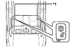 Hold the electrical key transmitter at the same height as the rear bumper upper surface and align with the center of the rear of the vehicle (0.7 to 1.0 m (2.30 to 3.28 ft.)). Make sure that the direction of the key is as shown in the illustration.