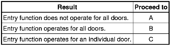 D -- GO TO OTHER PROBLEM (Proceed to Back Door Entry Lock and Unlock Functions do not Operate) Back Door Entry Lock And Unlock Functions Do Not Operate
