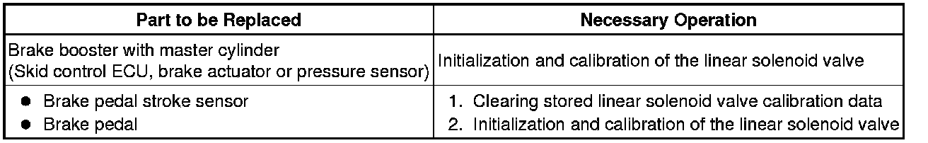 (a) Perform initialization and calibration of the linear solenoid valve when the brake booster with master cylinder (skid control ECU, brake actuator or pressure sensor), brake pedal stroke sensor or brake pedal is replaced.