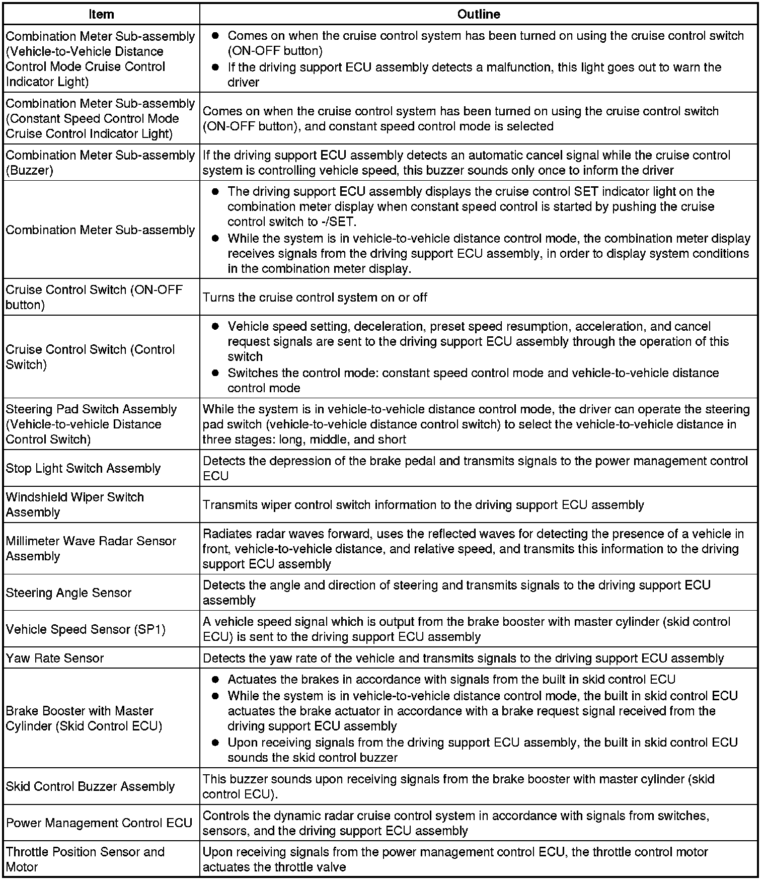 (d) The millimeter wave radar sensor assembly and the driving support ECU assembly control the system while vehicle-to-vehicle distance control mode is operating, and send signals to each actuator and ECU.