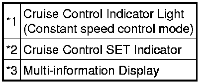 * Control conditions are indicated on the cruise control part of the combination meter sub-assembly.