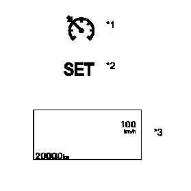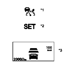 The vehicle speed is stored and vehicle-to-vehicle distance control mode begins controlling vehicle speed when the cruise control switch is pushed to -/SET while driving with the cruise control system on (while the cruise control indicator light is on), and the vehicle speed is within the set speed range (between the low and high speed limits). The cruise control set indicator will come on, and the set speed will be displayed in the cruise control part of the combination meter.