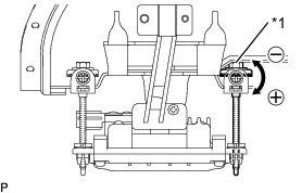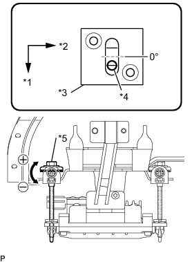 * If "LEFT SIDE: 1.0°" is displayed, the divergence is 1.0° in the left direction. Turn the bolt B approximately 2.5 turns to the negative (-) side.