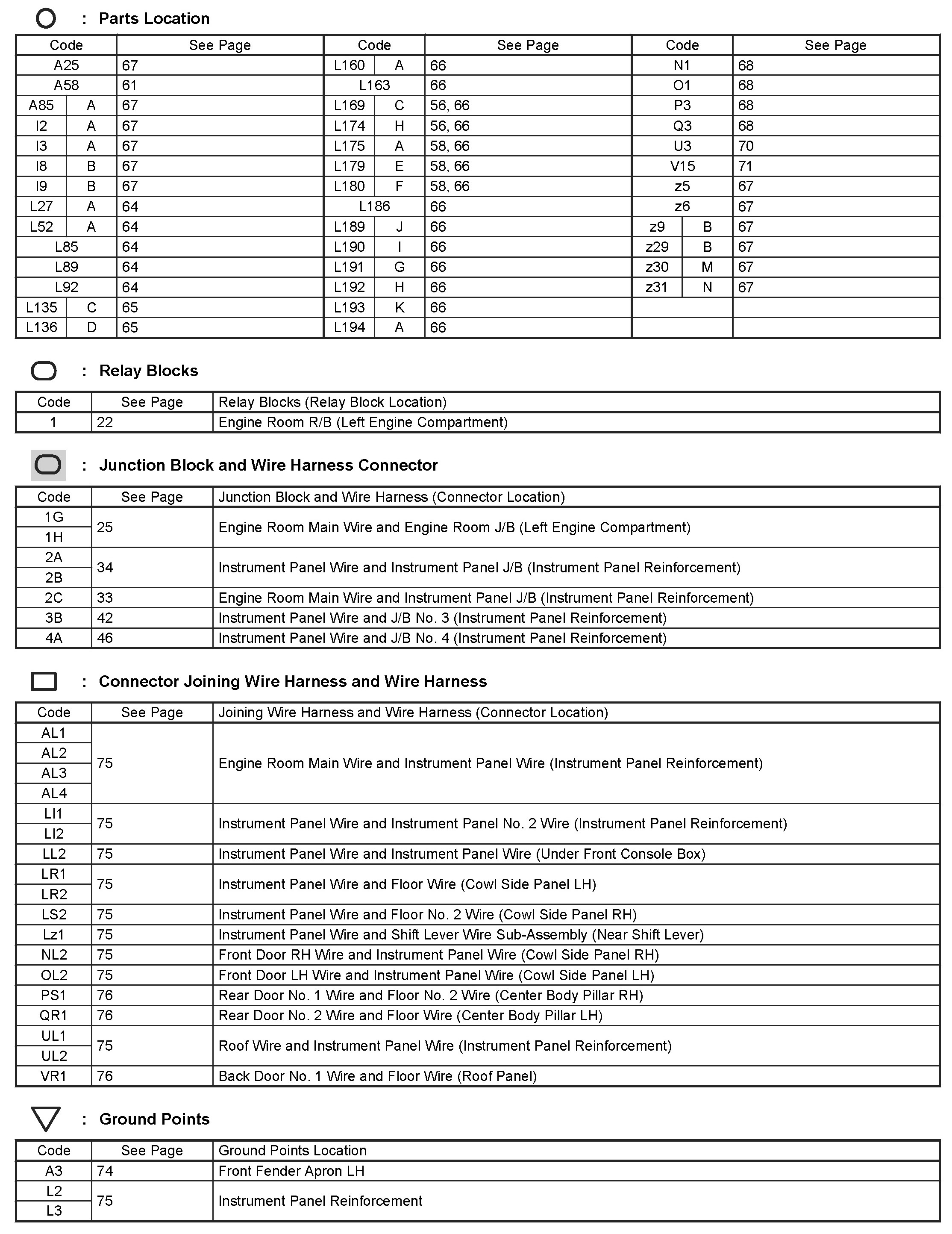 Locations: The locations of components, connectors, ground points, and splices referred to within these diagrams can be found at Vehicle Locations. Locations