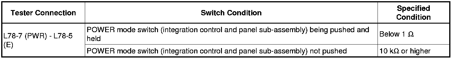 5. CHECK POWER MODE SWITCH (INTEGRATION CONTROL AND PANEL SUB-ASSEMBLY)