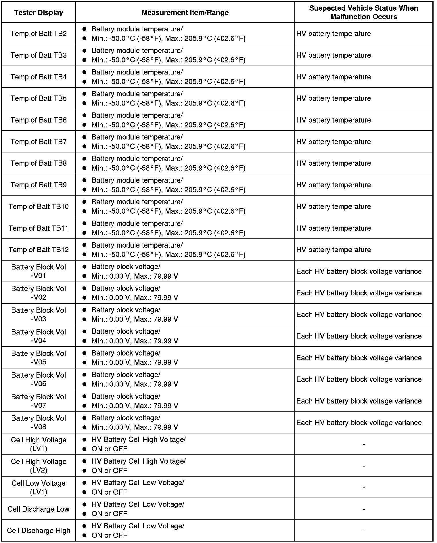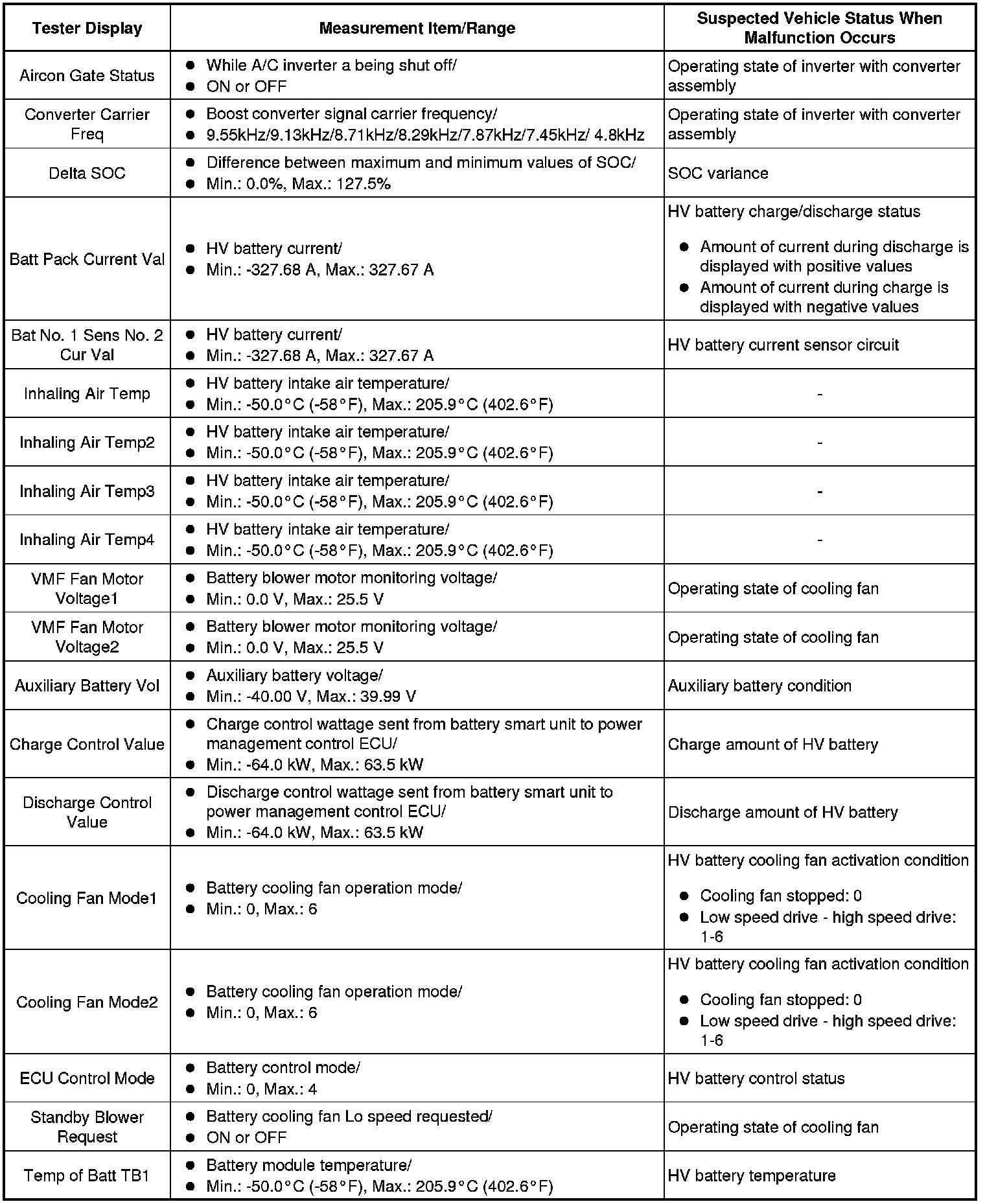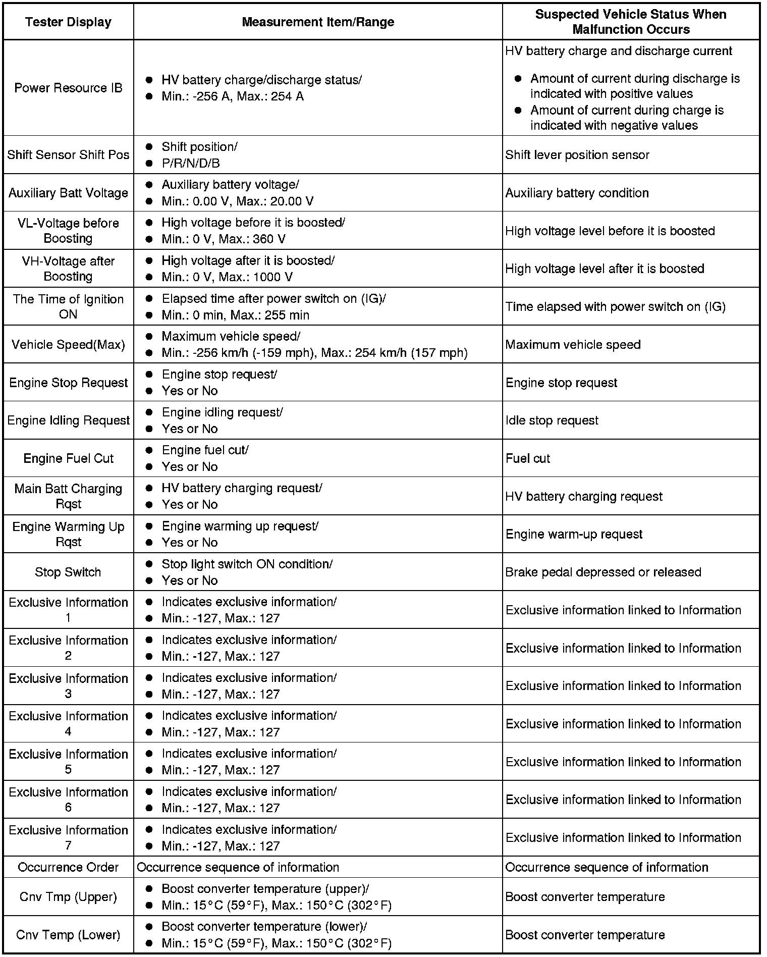 HYBRID / BATTERY CONTROL: HYBRID CONTROL SYSTEM: INFORMATION / FREEZE FRAME DATA