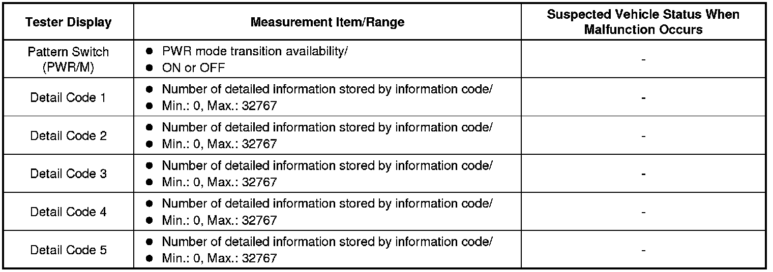 Similar to freeze frame data, the power management control ECU also records vehicle and driving condition information as INFORMATION (INF code) at the moment a DTC is stored.