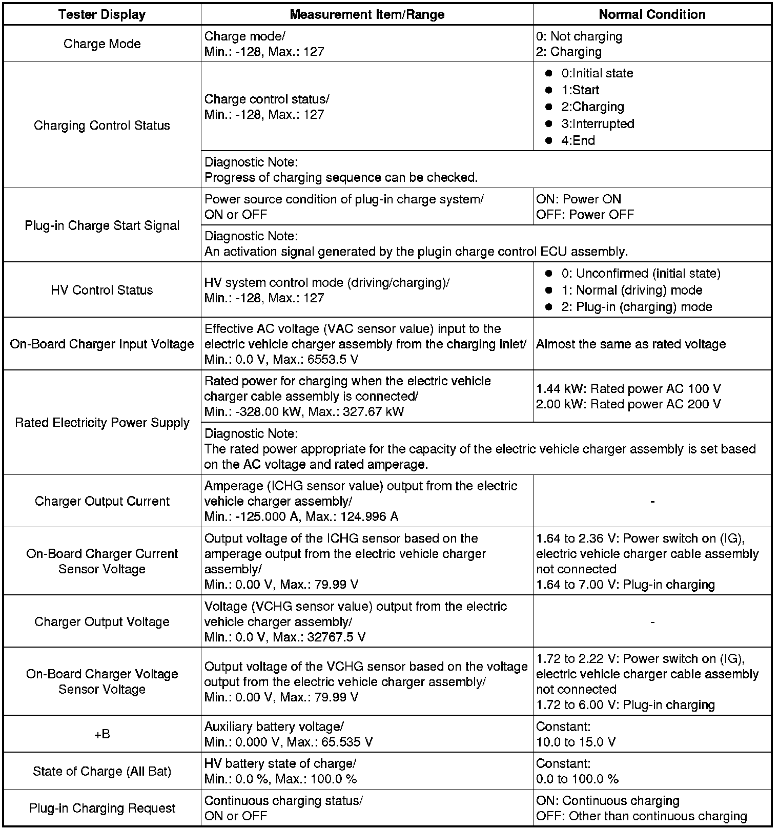 HYBRID / BATTERY CONTROL: PLUG-IN CHARGE CONTROL SYSTEM: DATA LIST / ACTIVE TEST