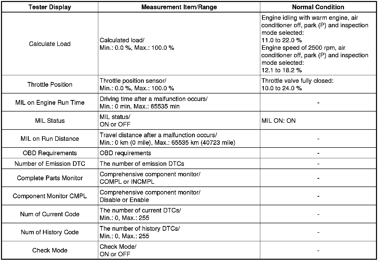 * Some Data List values may vary significantly if there are slight differences in the environment in which the vehicle is operating when measurements are obtained. Variations may also occur due to aging of the vehicle. Due to these considerations, it is not always possible to provide definite values to be used for judgment of malfunctions. It is possible that a malfunction may be present even if measured values are within the reference range.
