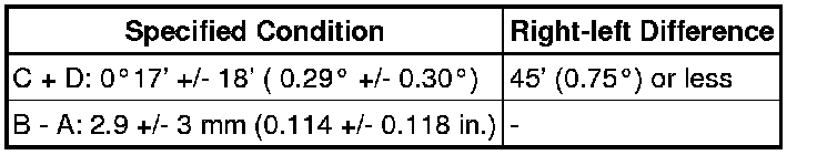 If the toe-in is not within the specified range, inspect the suspension parts and replace them if necessary.