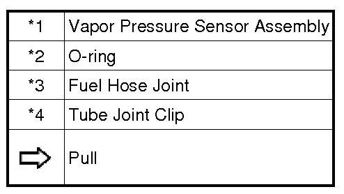 * If the fuel hose joint and vapor pressure sensor are stuck, carefully try wiggling or pushing and pulling on the vapor pressure sensor to release it. Pull the sensor off the fuel hose joint carefully.