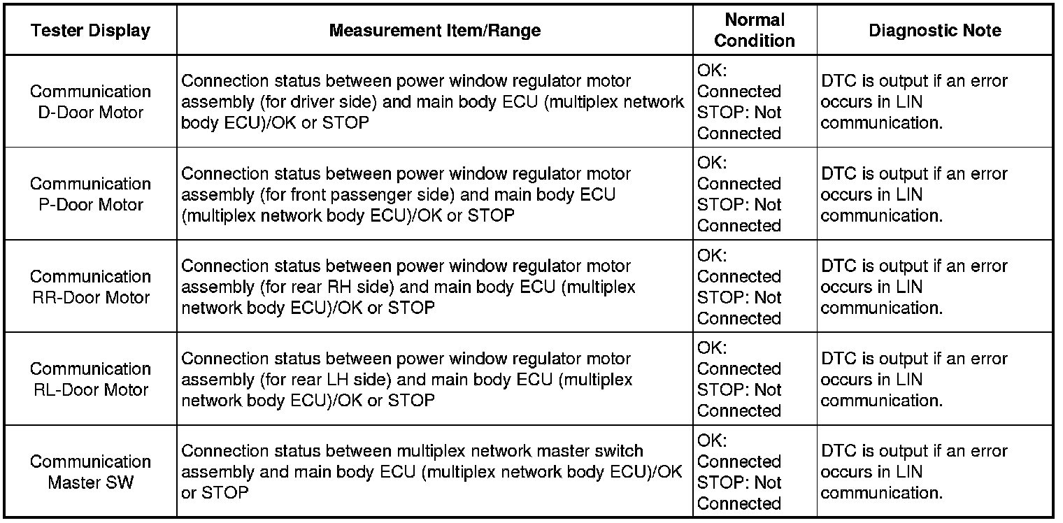 NETWORKING: LIN COMMUNICATION SYSTEM: DATA LIST / ACTIVE TEST