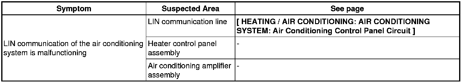 NETWORKING: LIN COMMUNICATION SYSTEM: PROBLEM SYMPTOMS TABLE