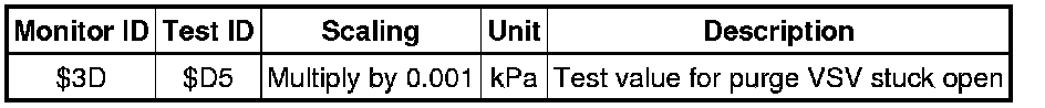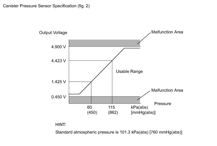 The vent valve is turned on (closed) and the EVAP pressure is then measured. If the variation in the pressure is less than 0.5 kPa(gauge) [3.751 mmHg(gauge)], the ECM interprets this as the purge VSV being stuck closed, illuminates the MIL and stores DTC P0441 (2 trip detection logic).