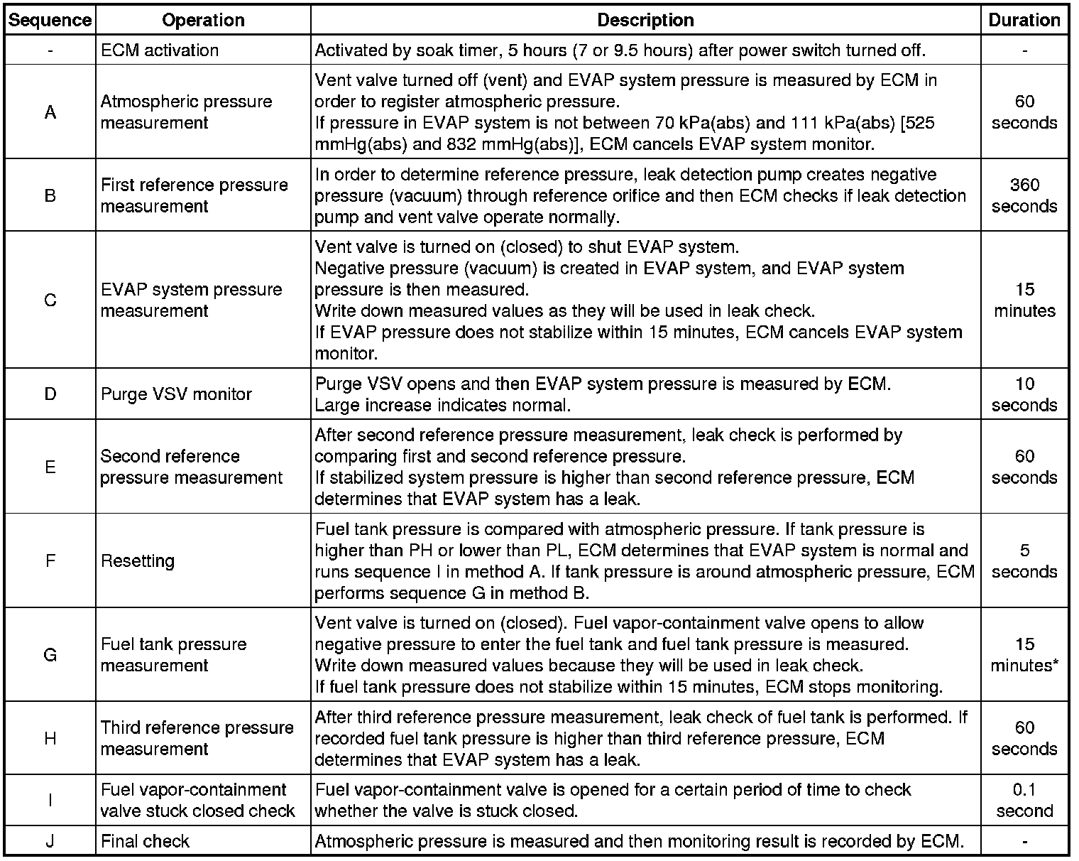 *: If there is only a small amount of fuel in the fuel tank, stabilizing the EVAP pressure takes longer than usual.