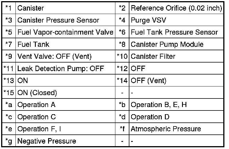 * If the fuel tank pressure is higher or lower than the atmospheric pressure, the system determines that there are no leaks in the closed tank system and the system will check for leaks from the piping and canister between the purge VSV and canister pump module. (Method A)