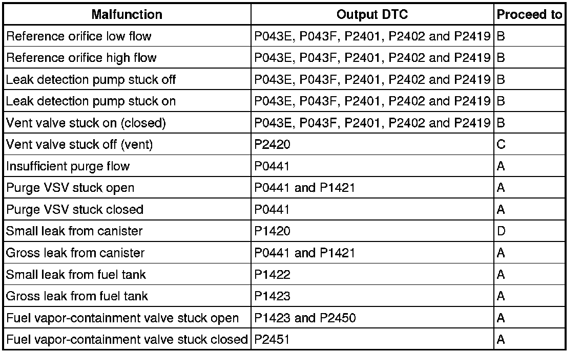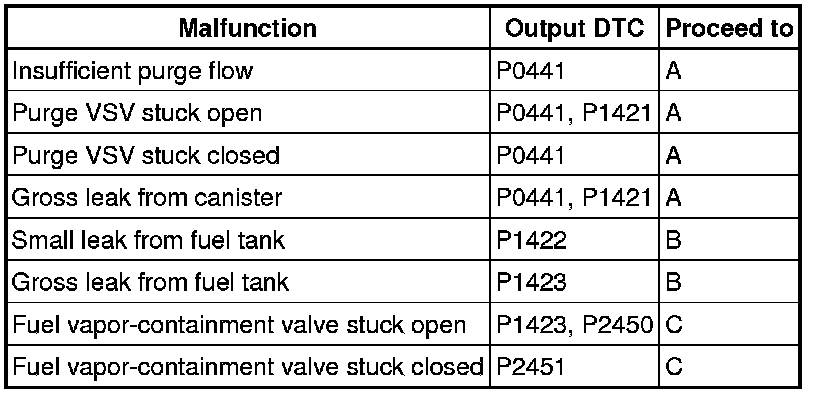 (a) Refer to the table below to determine the next procedure according to the output DTCs.
