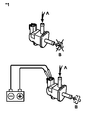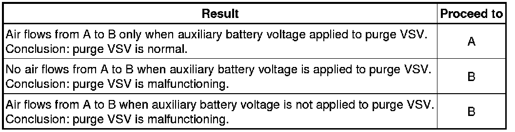 (b) Apply compressed air to the purge VSV, and confirm that no air flows from A to B as shown in the illustration.