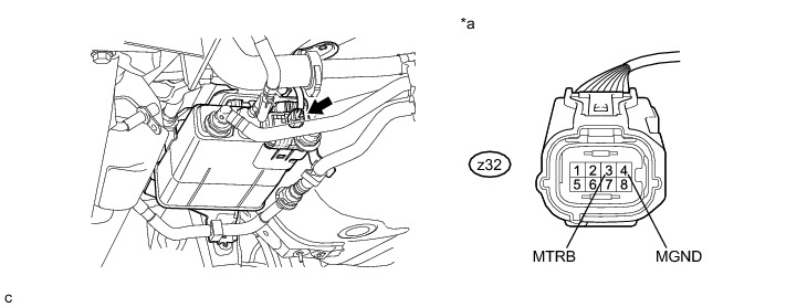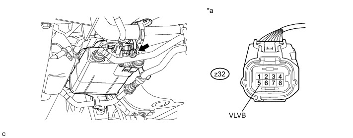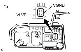 (b) Apply auxiliary battery voltage to VLVB and VGND terminals of the canister pump module.