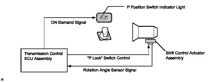 (3) If the power management control ECU determines that "P lock" is possible, it sends a "P lock" operation demand signal to the transmission control ECU assembly.