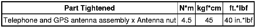 SPECIFICATIONS: CELLULAR COMMUNICATION: TORQUE SPECIFICATIONS