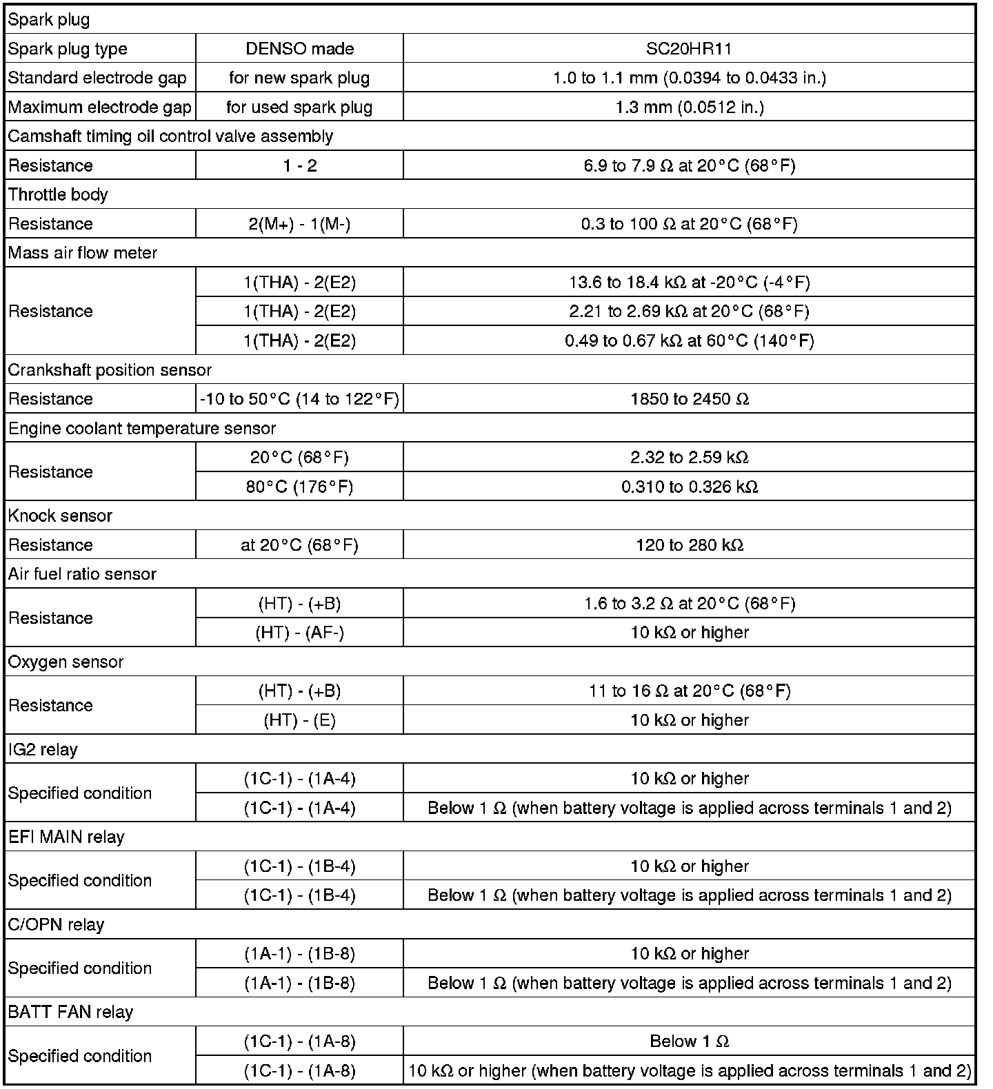 SPECIFICATIONS: 2ZR-FXE ENGINE CONTROL: SERVICE DATA