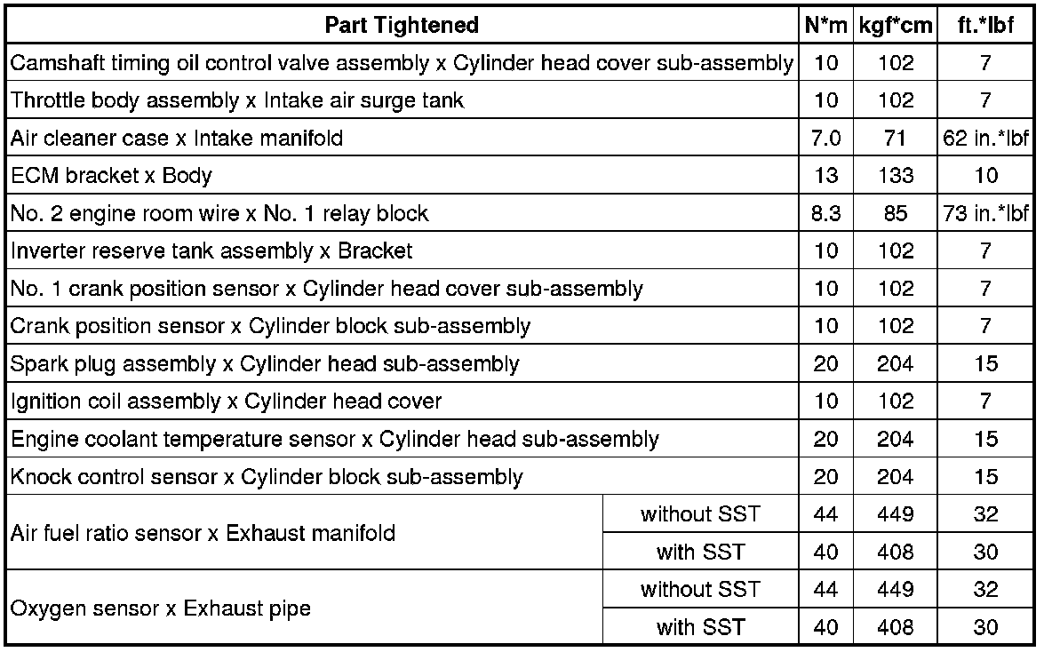 SPECIFICATIONS: 2ZR-FXE ENGINE CONTROL: TORQUE SPECIFICATIONS