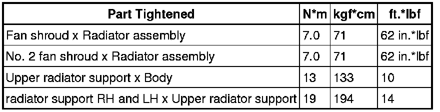 SPECIFICATIONS: 2ZR-FXE COOLING: TORQUE SPECIFICATIONS