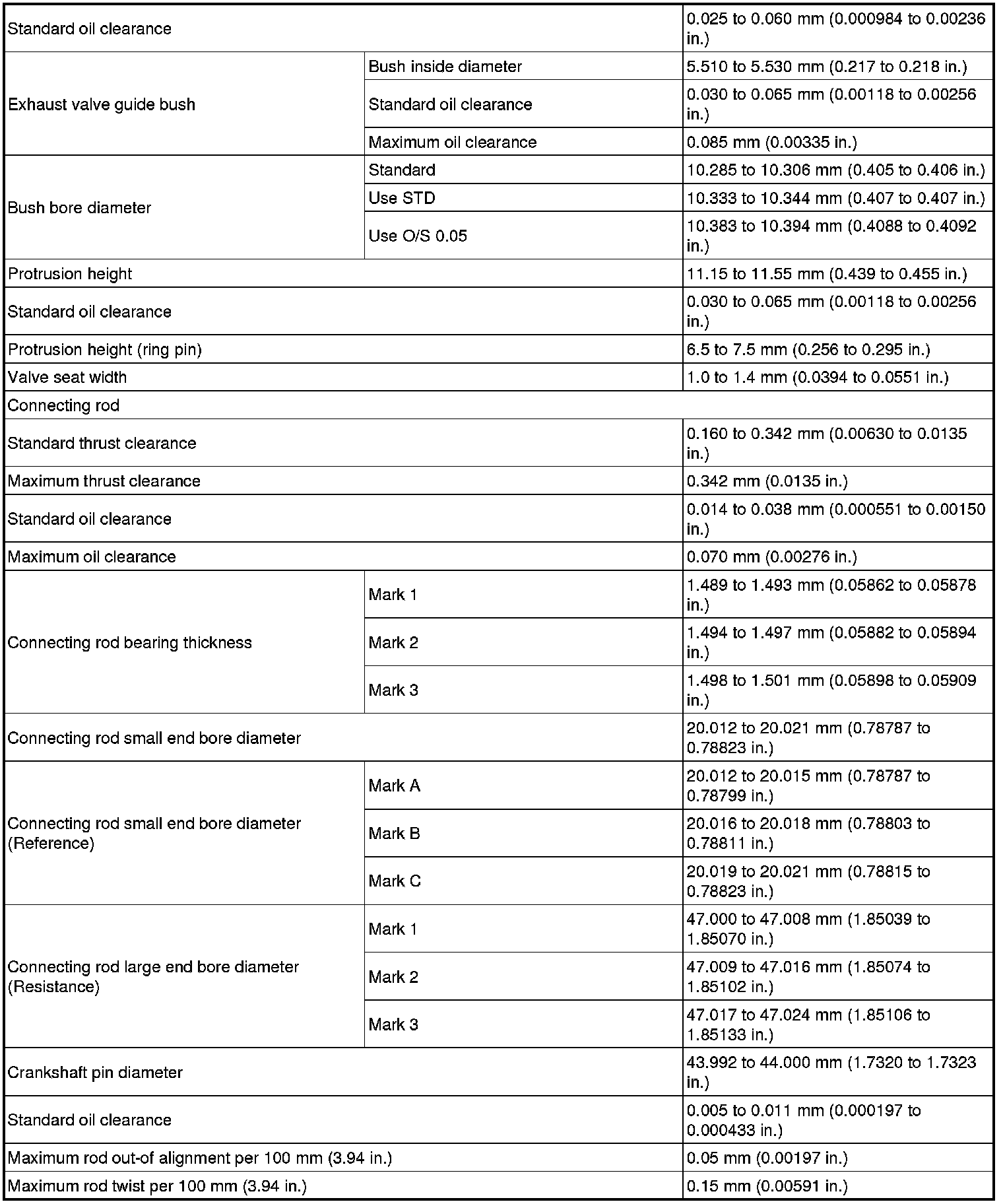 SPECIFICATIONS: 2ZR-FXE ENGINE MECHANICAL: SERVICE DATA