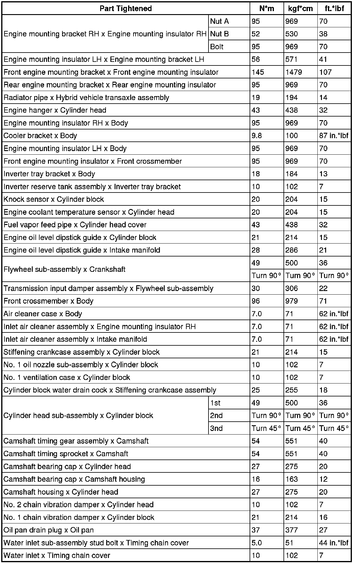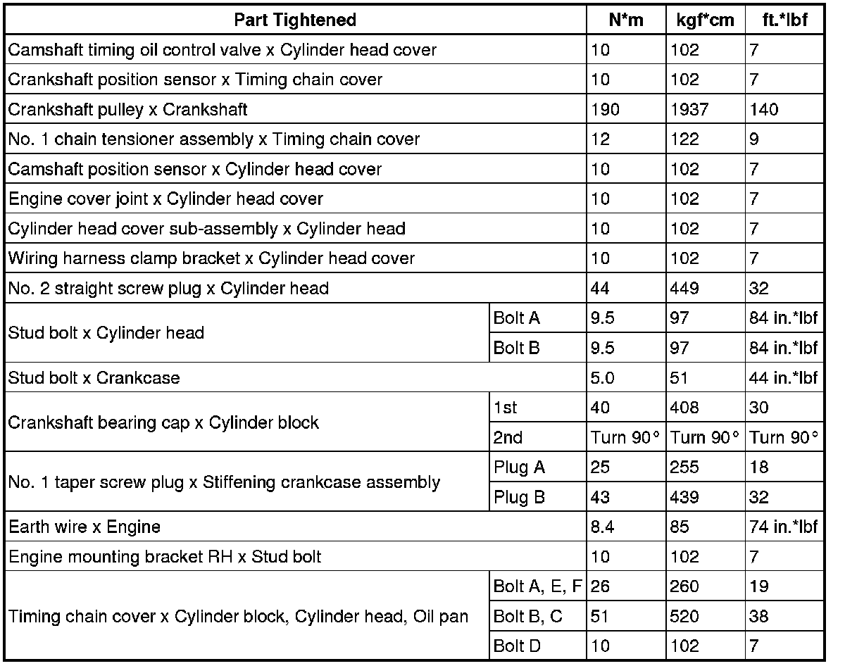 SPECIFICATIONS: 2ZR-FXE ENGINE MECHANICAL: TORQUE SPECIFICATIONS